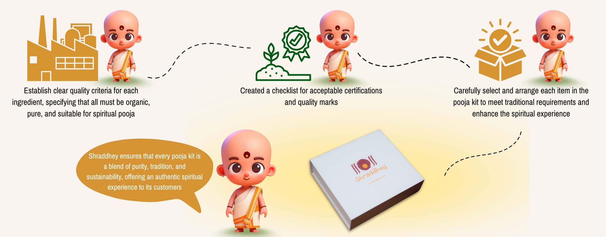 In a world where we meticulously choose the best products for ourselves, it struck us that when it comes to our sacred rituals and Poojas, we often hand over a list to a merchant who assembles the cheapest, subpar items for our worship. This raised a question in our hearts - why do we offer to the Divine what we wouldn't use ourselves? Driven by this realization, we embarked on a mission to offer the highest quality products for Pooja at an affordable price.