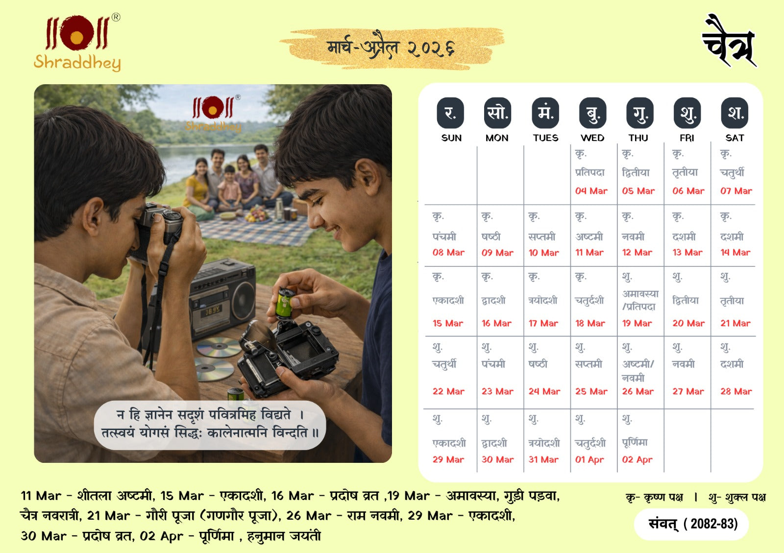 Anandit Tithiya follows the Hindu Panchāng system, beginning with Chaitra, and reflects lunar tithis and key observances.